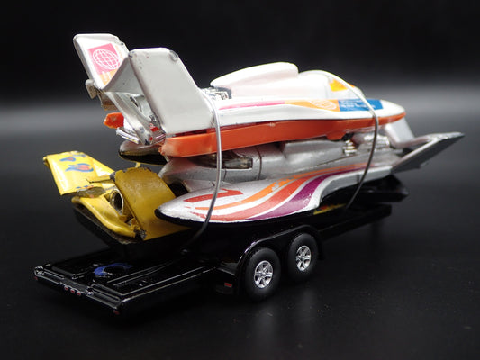 SPEED BOATS 3 CARS CRUSHED ON A FLATBED TRAILER 1:64 SCALE DIECAST MODEL CAR