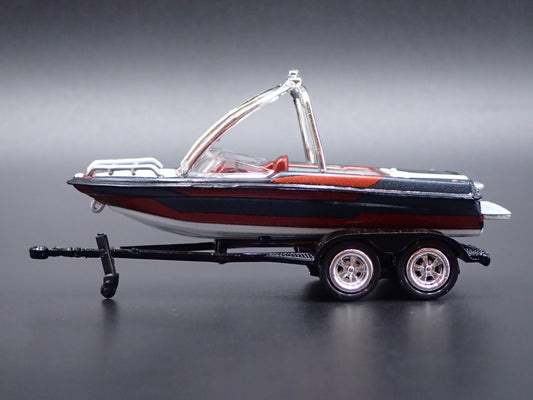SKI & WAKEBOARD SPEED BOAT ON TRAILER RARE 1/64 SCALE DIORAMA PROP MODEL BOAT