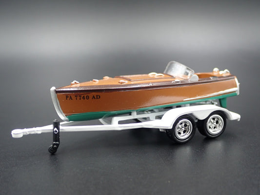 VINTAGE WOODEN BARRELBACK BOAT ON TRAILER 1/64 SCALE DIORAMA PROP MODEL BOAT