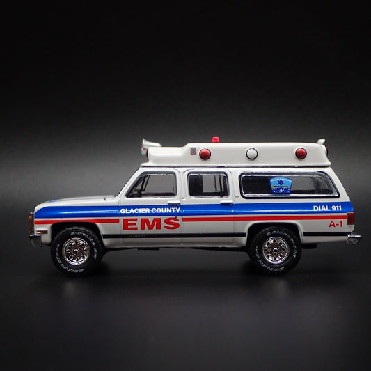 1973-1991 GMC SUBURBAN AMBULANCE EMS CUT BANK, MT 1/64 SCALE DIECAST MODEL CAR