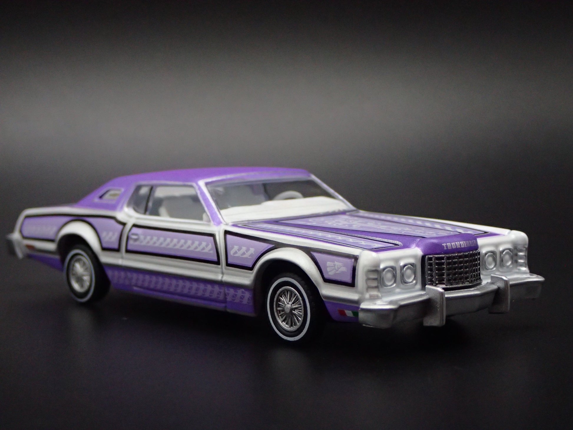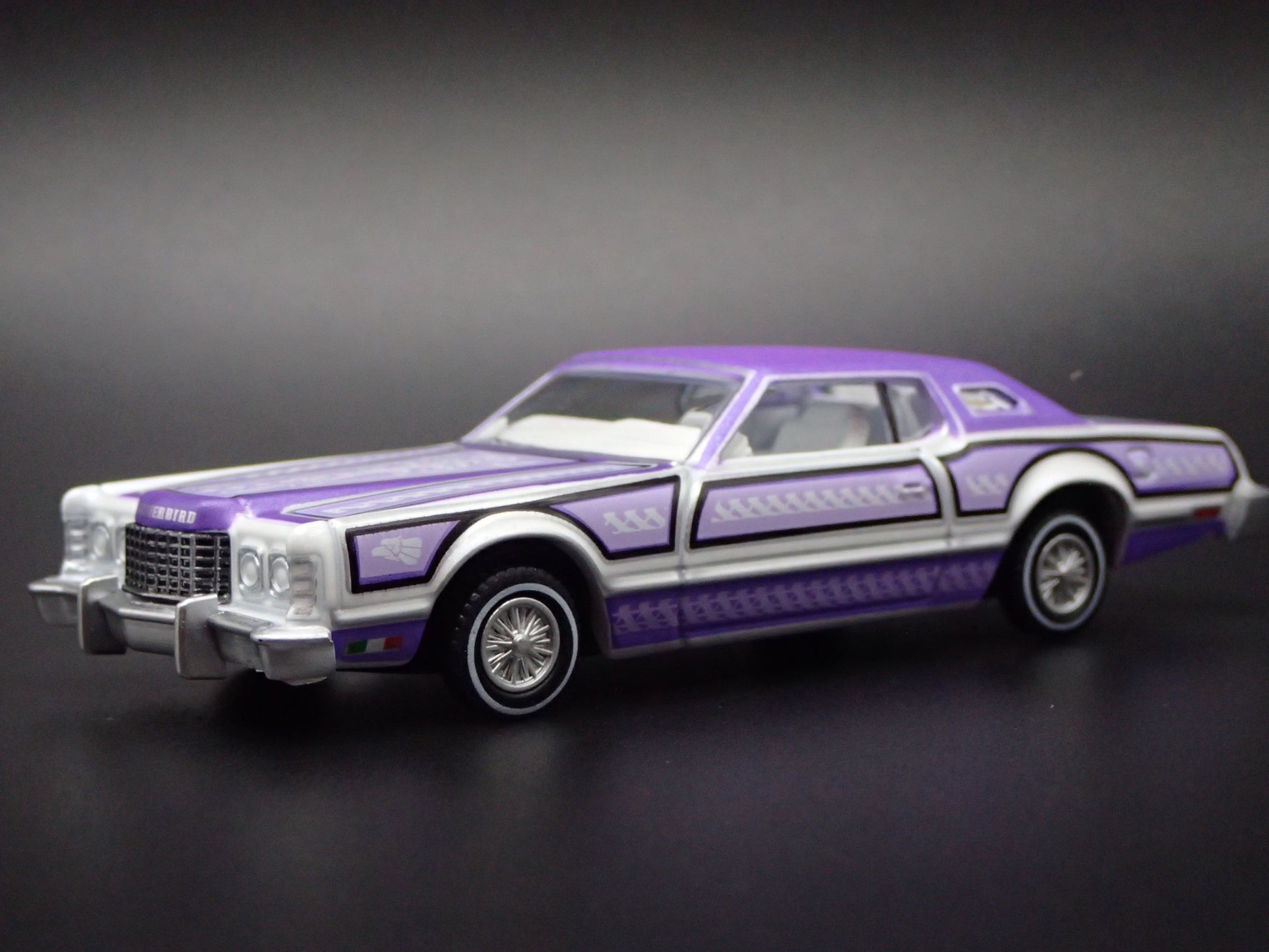1973 73 FORD THUNDERBIRD LOWRIDER PURPLE 1:64 SCALE DIORAMA DIECAST MODEL CAR