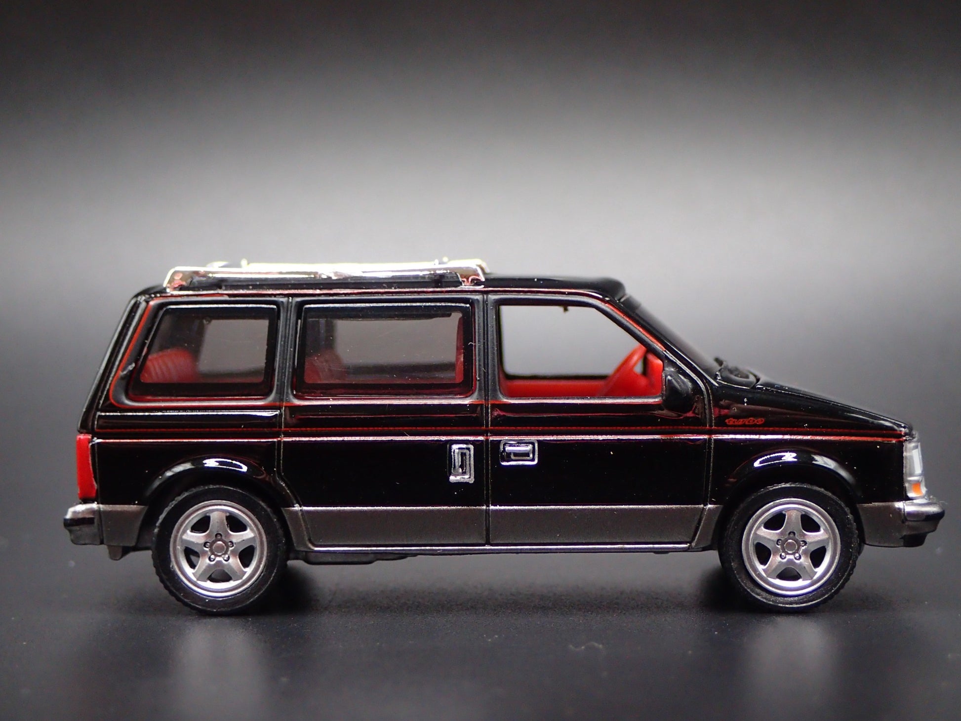 1984-1990 DODGE CARAVAN BLACK 1/64 SCALE COLLECTIBLE DIORAMA DIECAST MODEL CAR from Burning Rubber Toy Company