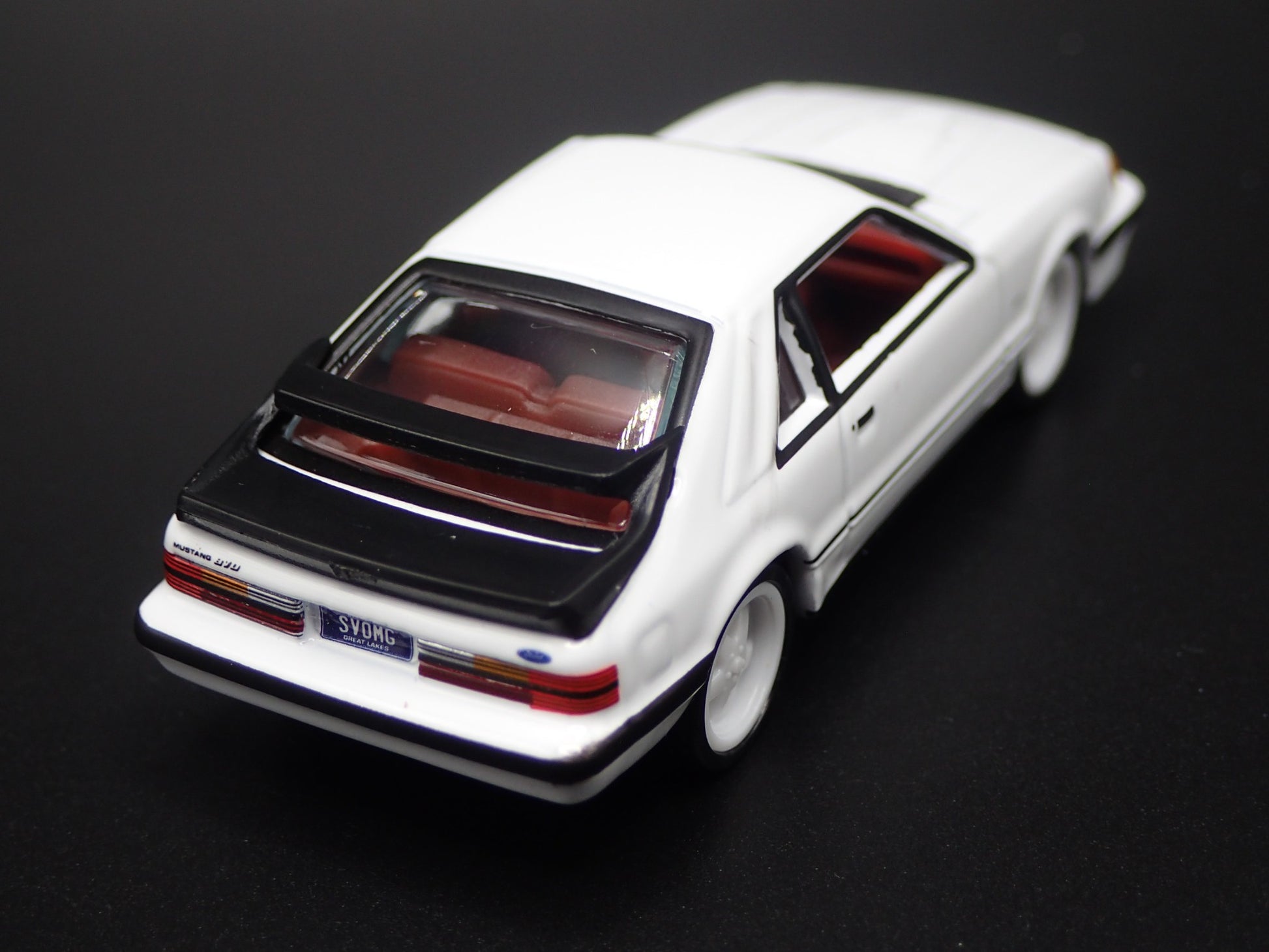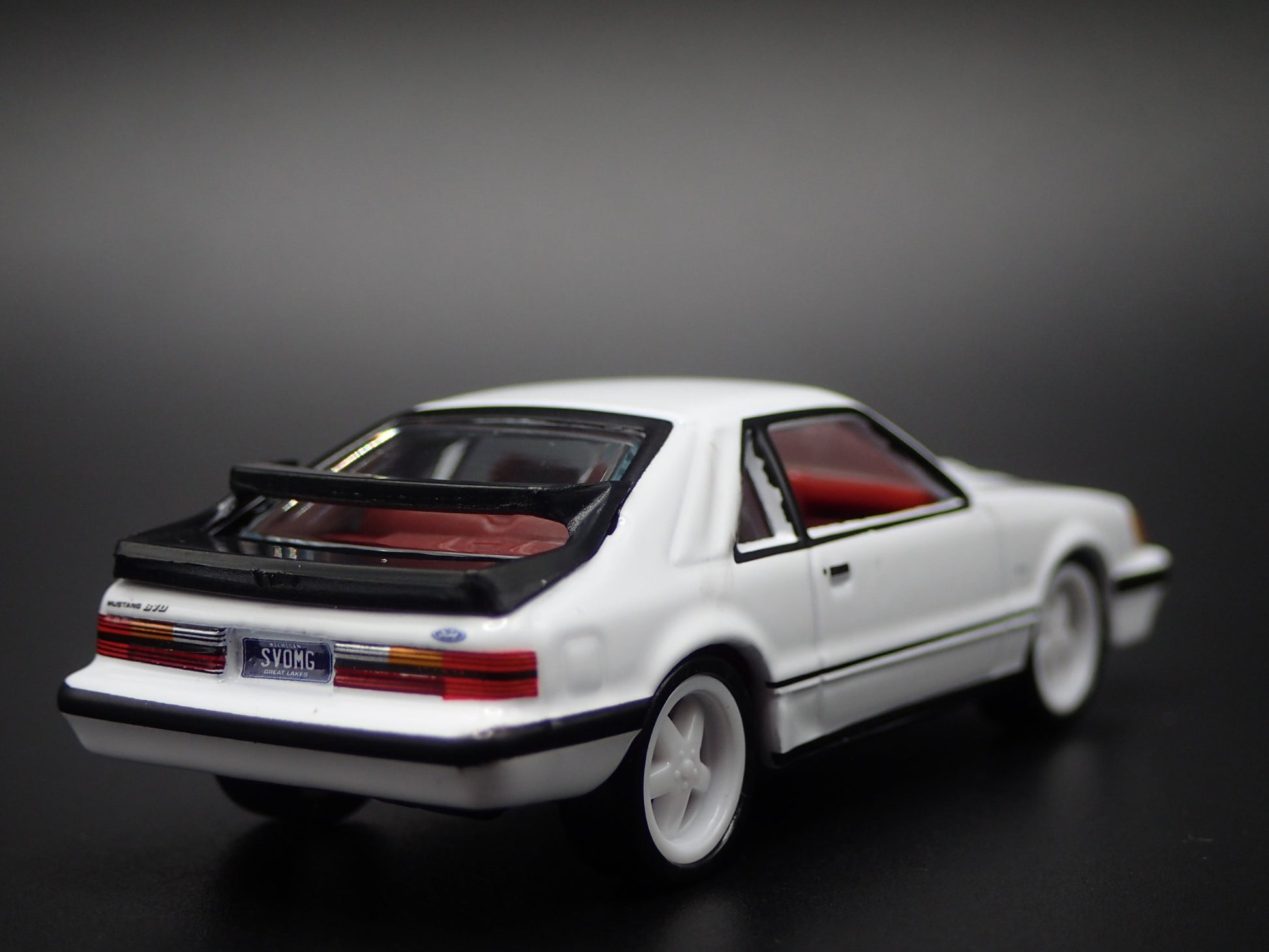1985 85 FORD MUSTANG SVO FOX BODY WHITE 1:64 SCALE DIORAMA DIECAST MODEL CAR from Burning Rubber Toy Company