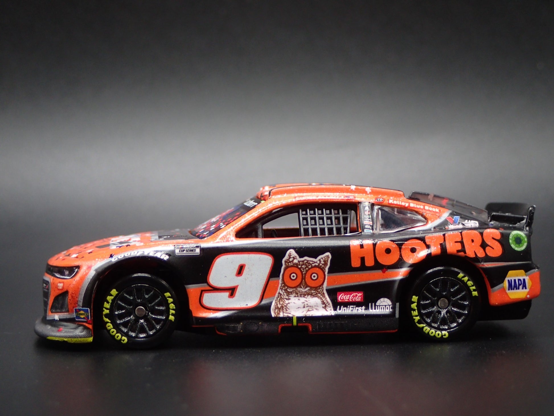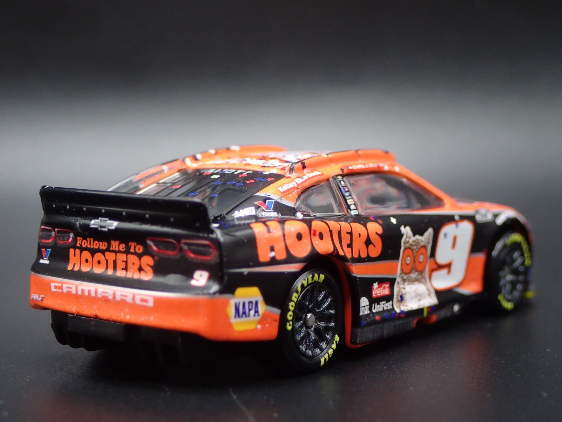 2024 CHEVY CAMARO ZL1 #9 CHASE ELLIOTT HOOTERS WIN NASCAR 1:64 SCALE DIECAST CAR from Burning Rubber Toy Company