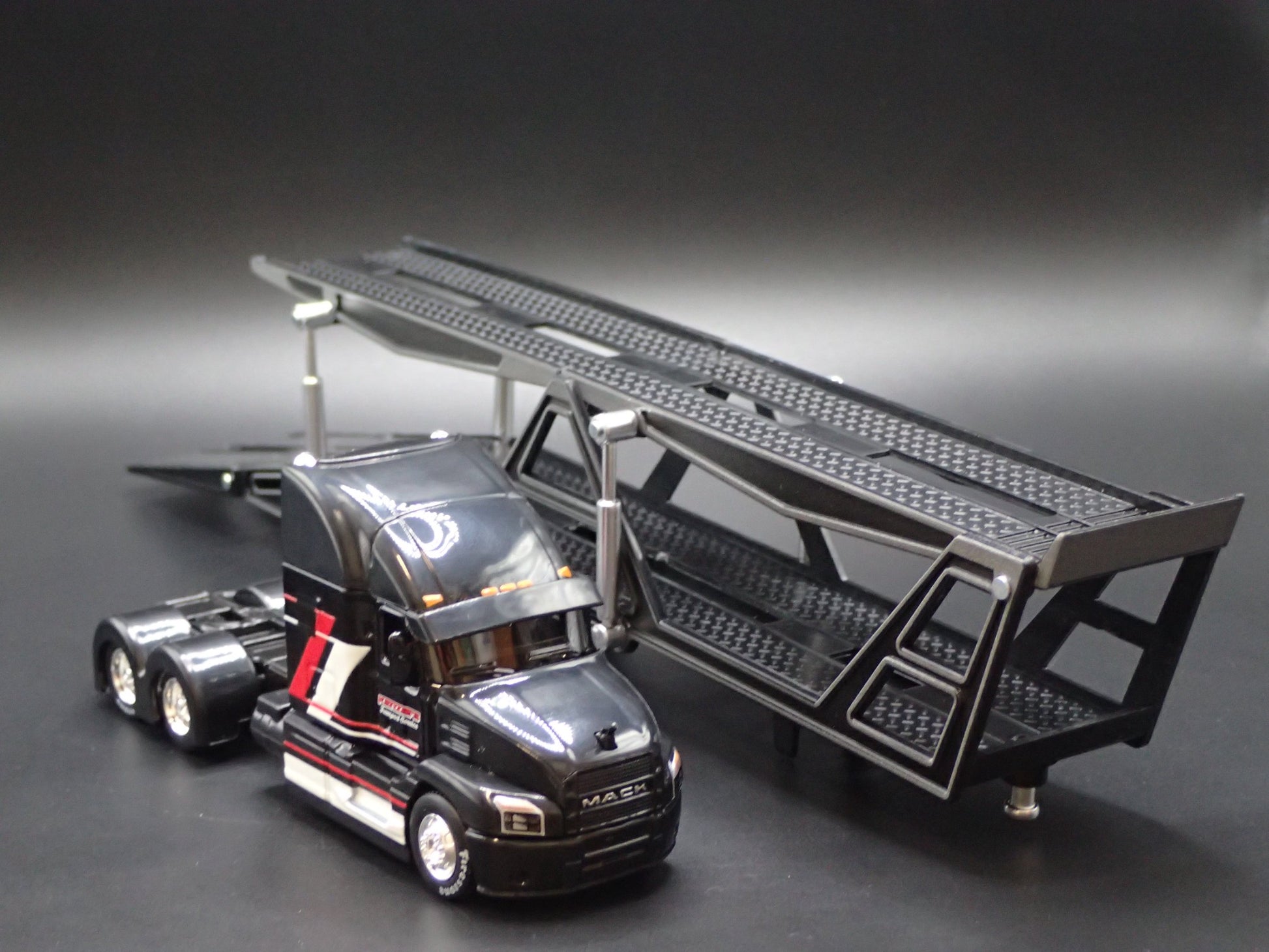 MACK ANTHEM RIG & CAR TRANSPORTER HAULER TRAILER BLACK 1:64 SCALE DIECAST MODEL