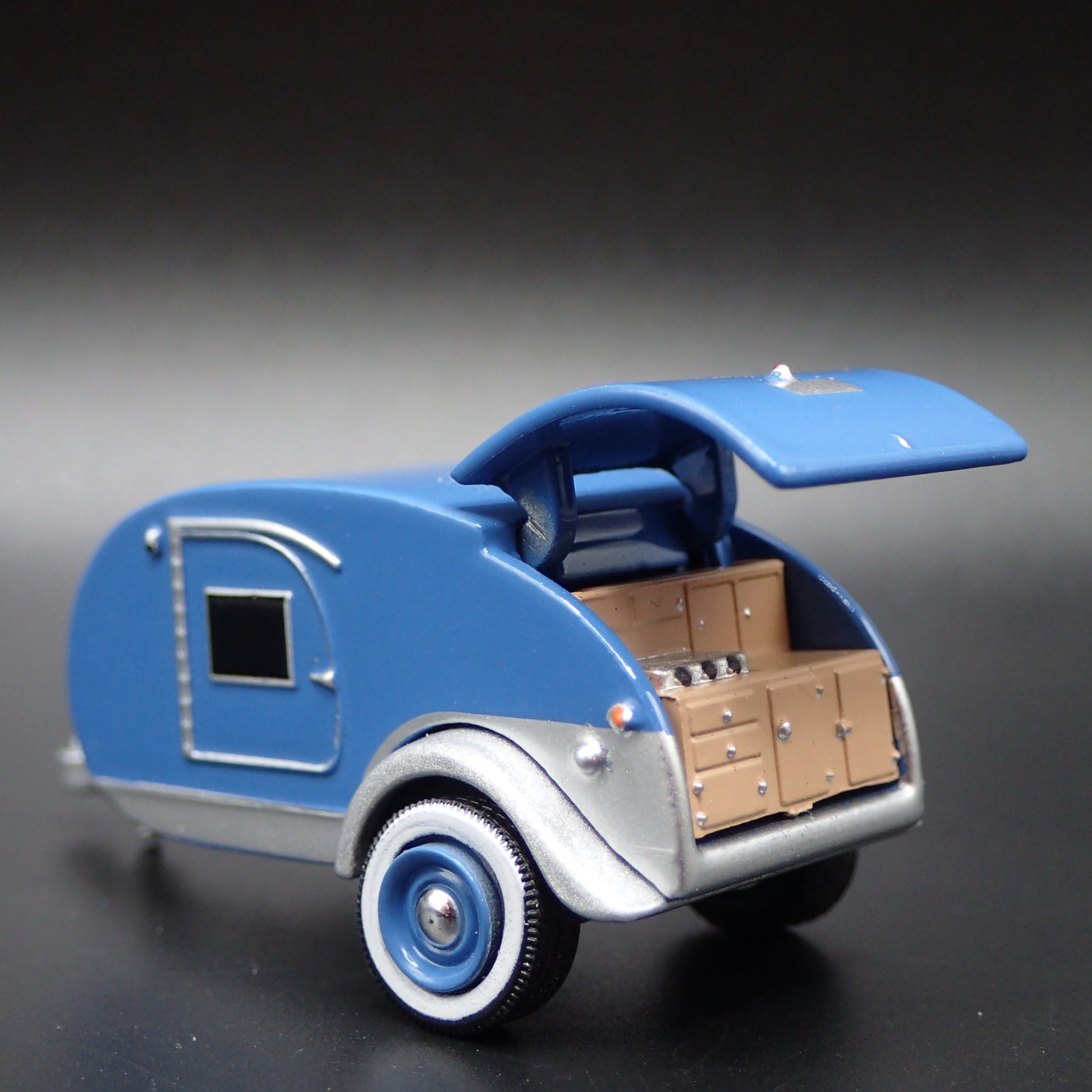 TEARDROP TRAVEL TRAILER CAMPER CANNED HAM 1:64 SCALE DIORAMA DIECAST MODEL CAR from Burning Rubber Toy Company
