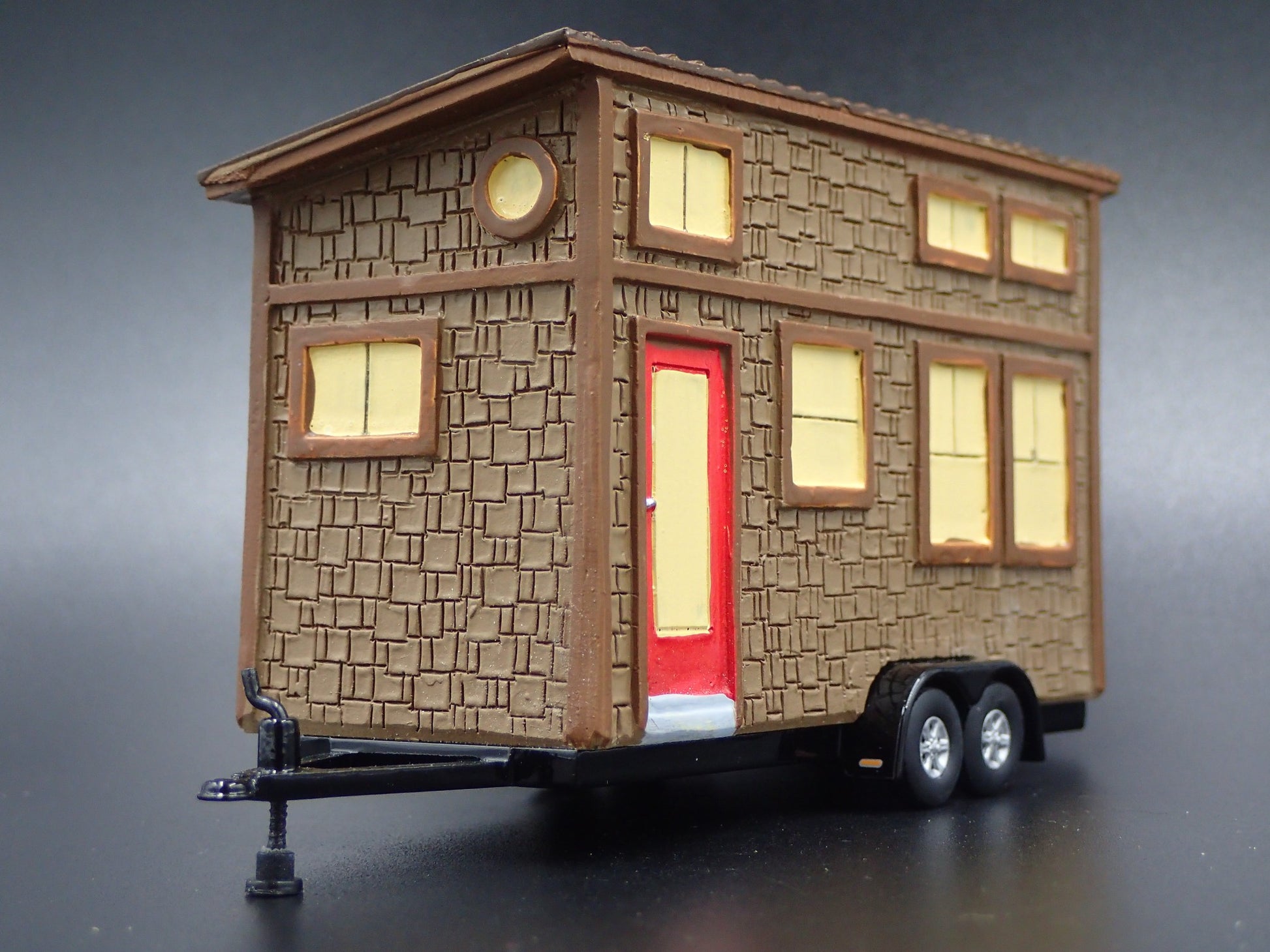 TINY HOUSE HOME FLAT BED TRAILER CAMPER W/ HITCH 1:64 SCALE DIORAMA RESIN MODEL